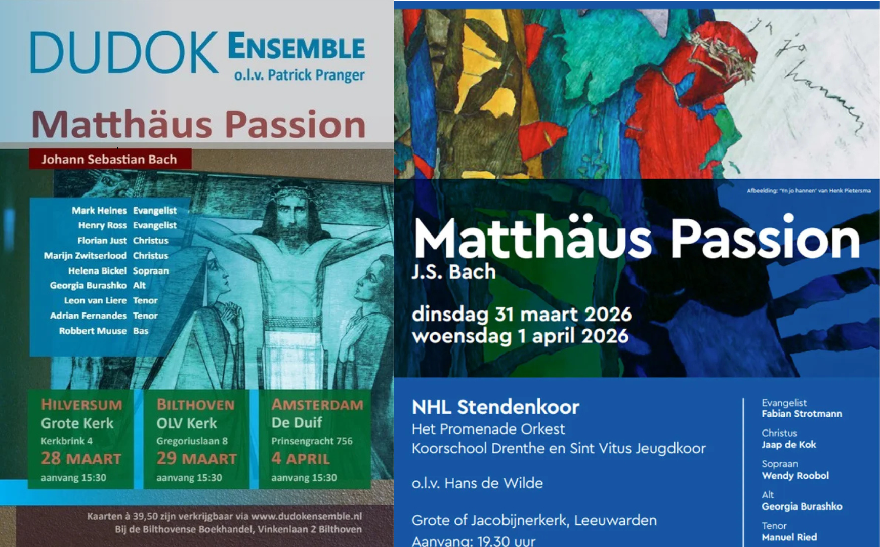 March 28 to 29, and April 4 - Dudok Ensemble (Hilversum, Bilthoven, & Amsterdam)